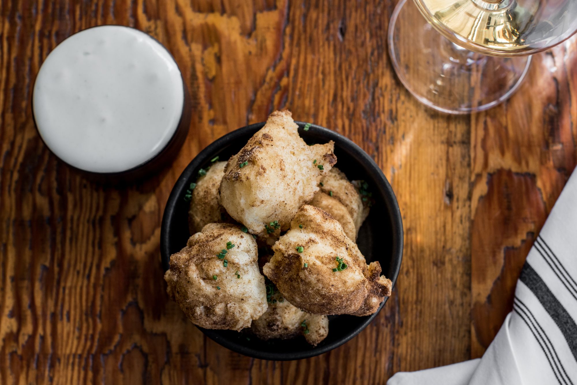- Repeat with the rest of the donut batter, taking the oil back to 350°F [180°C] after each clump. Serve the doughnuts hot out of the stove with the warm raclette sauce.